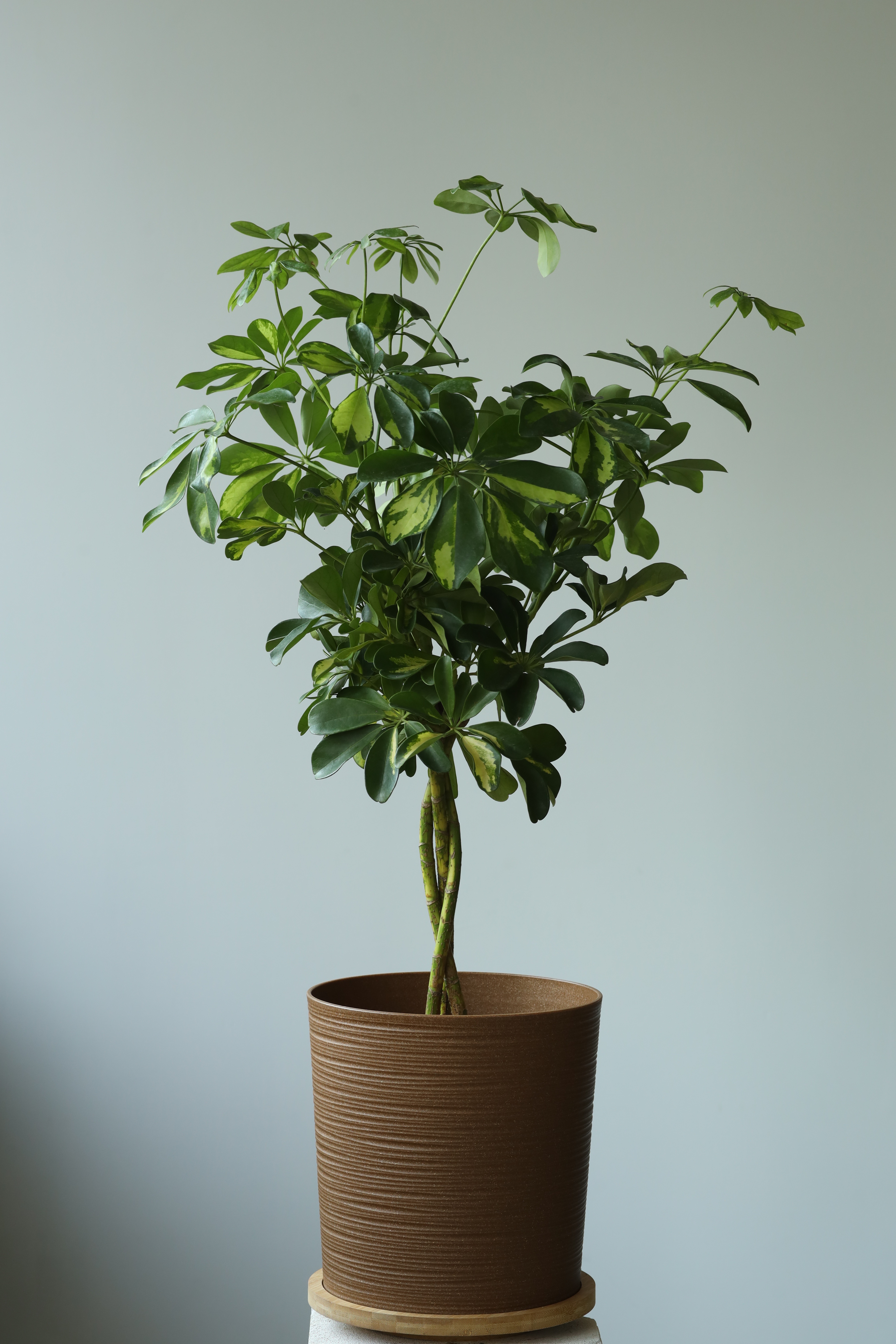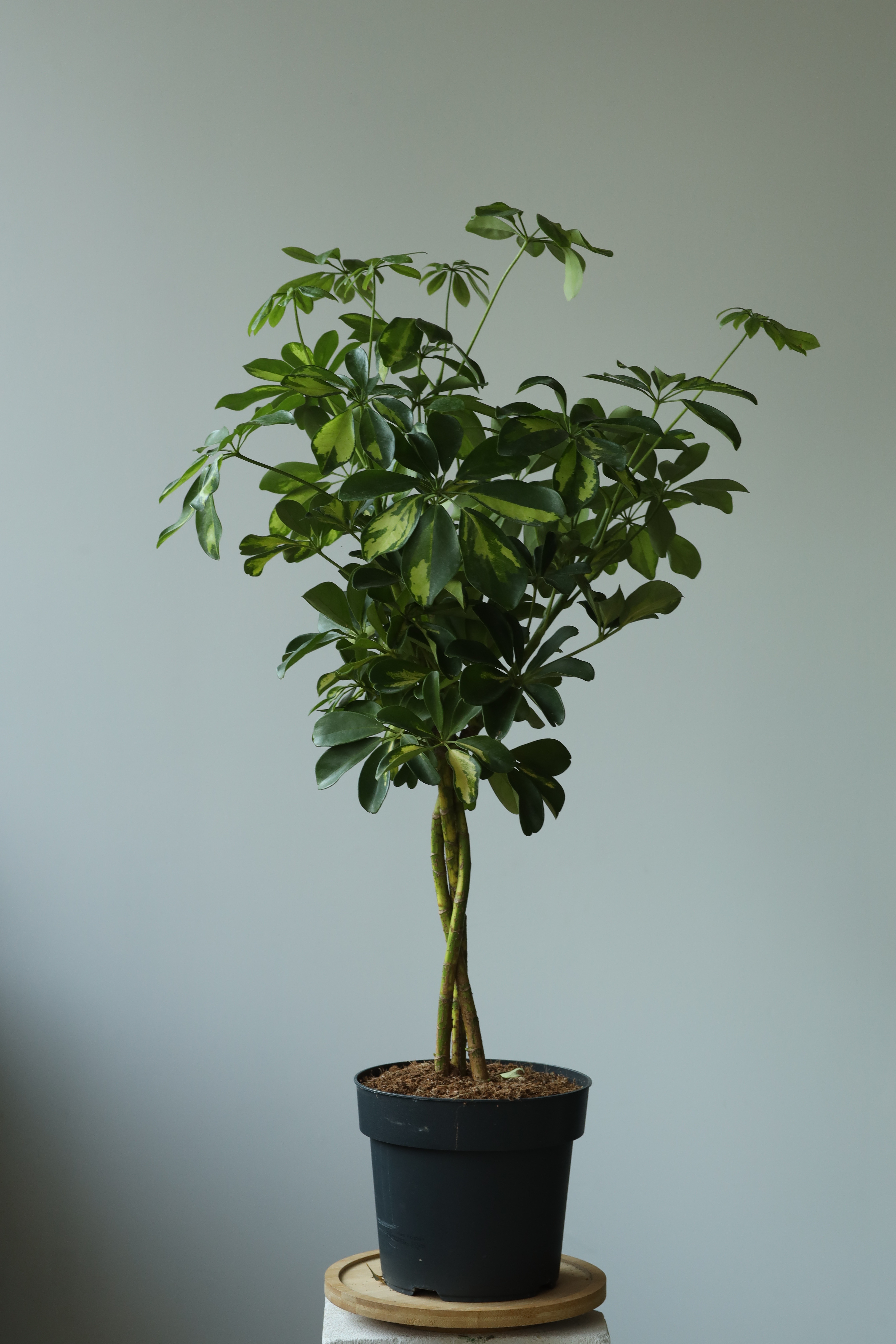Шеффлера Голд Капелла штамб — неприхотливое, но эффектное комнатное дерево, которое легко ухаживать даже начинающим цветоводам. Она предпочитает яркий рассеянный свет, но хорошо переносит и полутень. Прямые солнечные лучи могут повредить листья, поэтому ставьте её подальше от окна с активным солнцем.